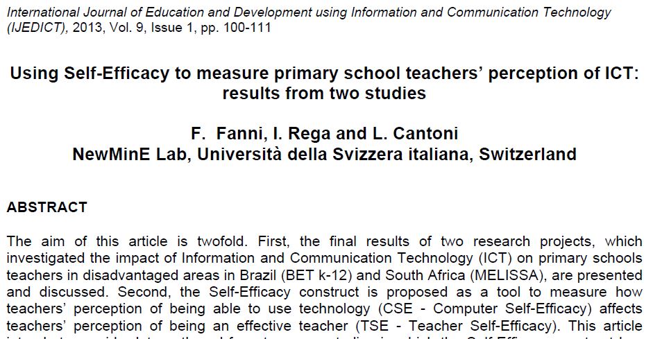 Using Self-Efficacy to measure primary school teachers’ perception of ICT: results from two studies